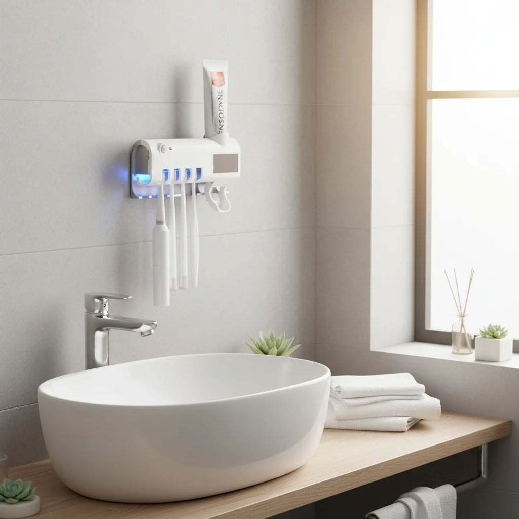 بسط روتينك اليومي للعناية بالأسنان واضمن نظافة لا تشوبها شائبة لجميع أفراد الأسرة. حامل فرشاة الأسنان بالأشعة فوق البنفسجية يحول حمامك إلى مساحة أكثر صحة وتنظيمًا، بلا مجهود.